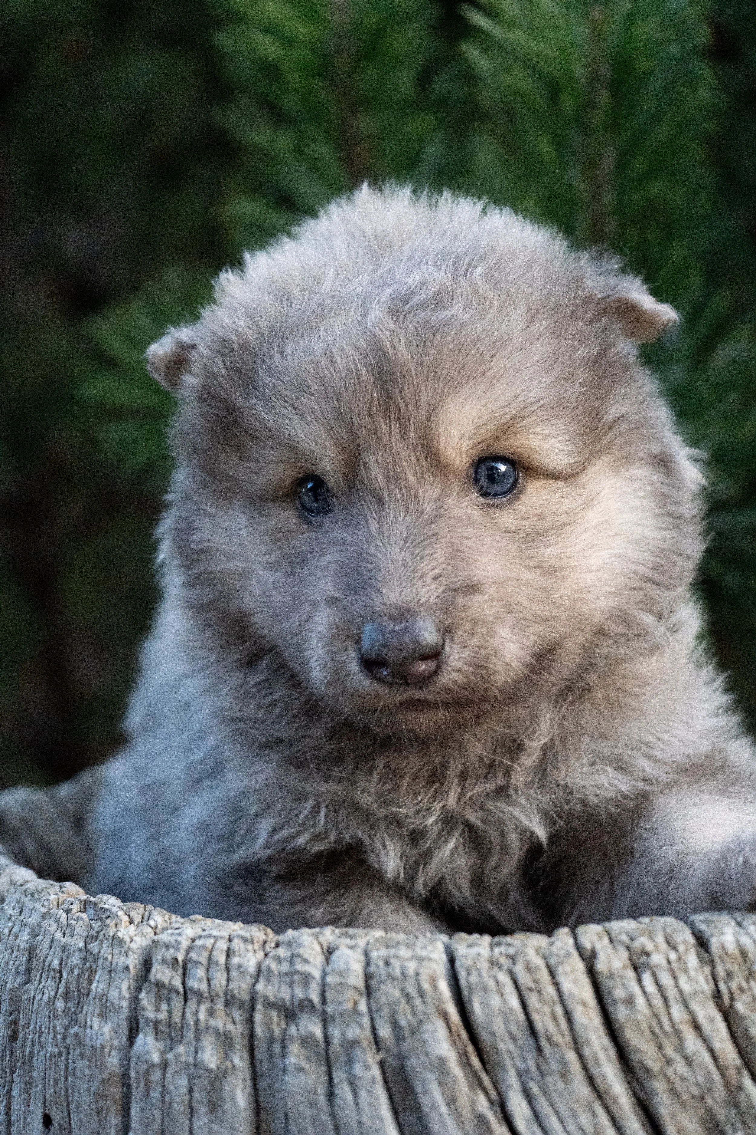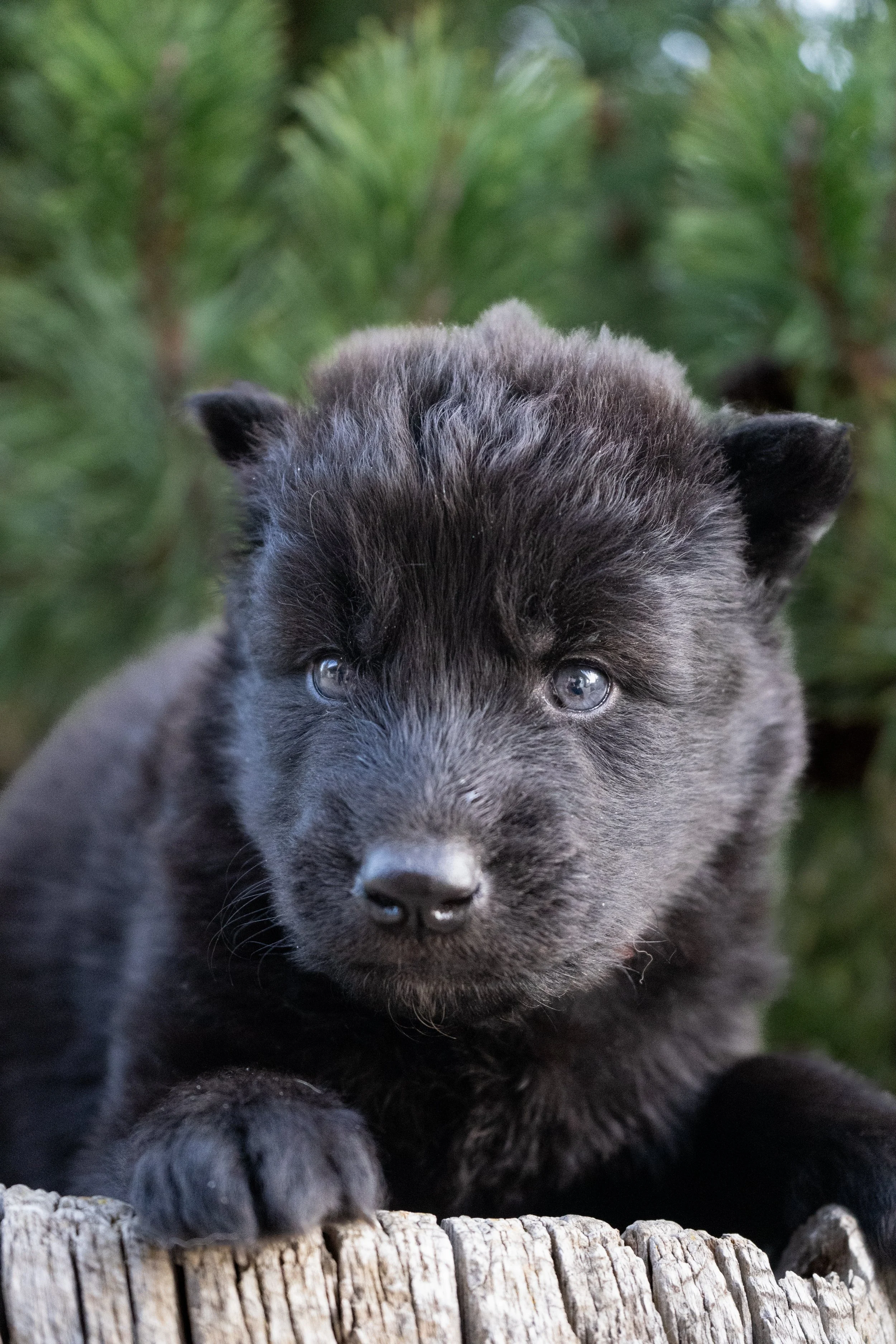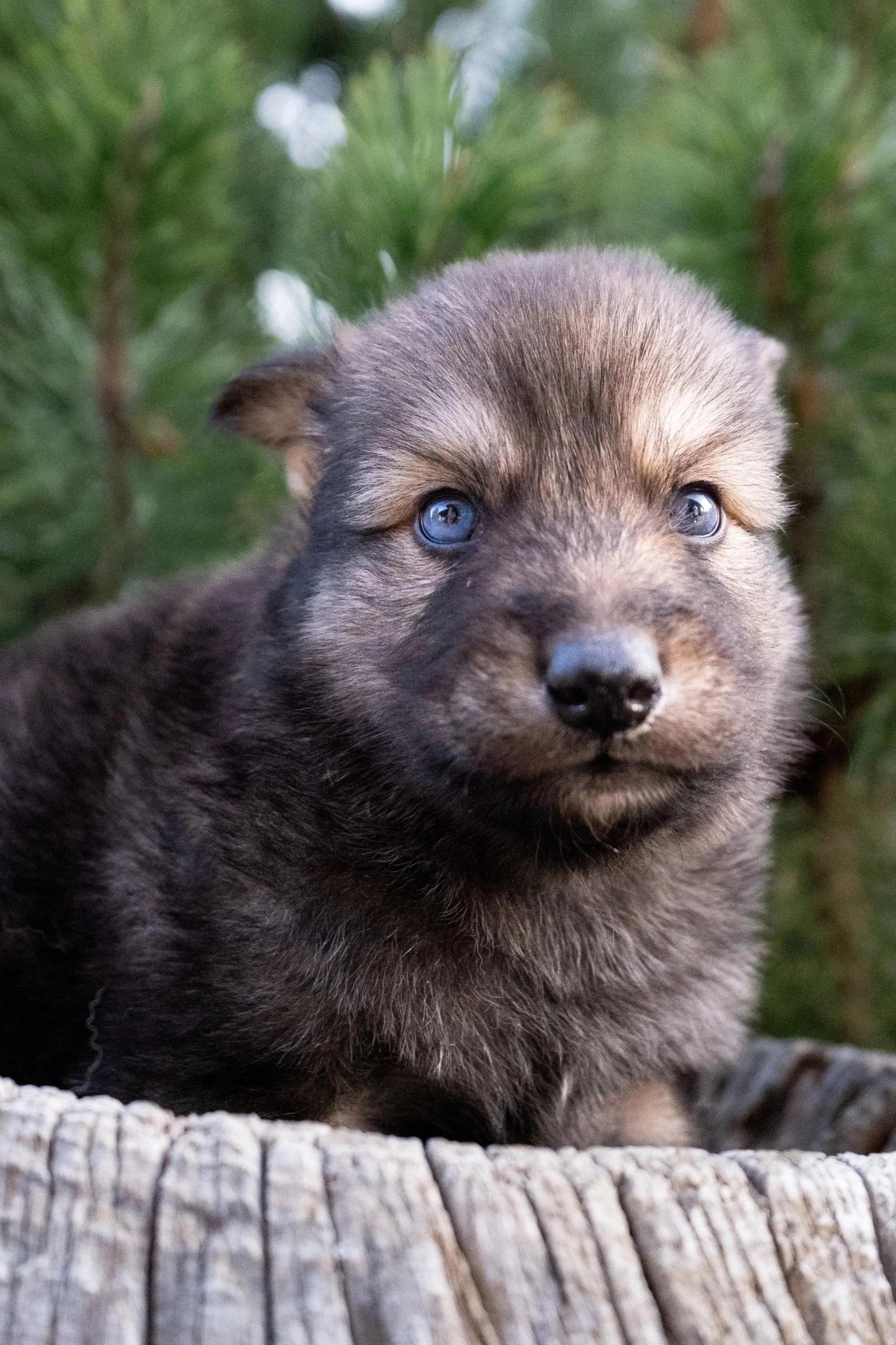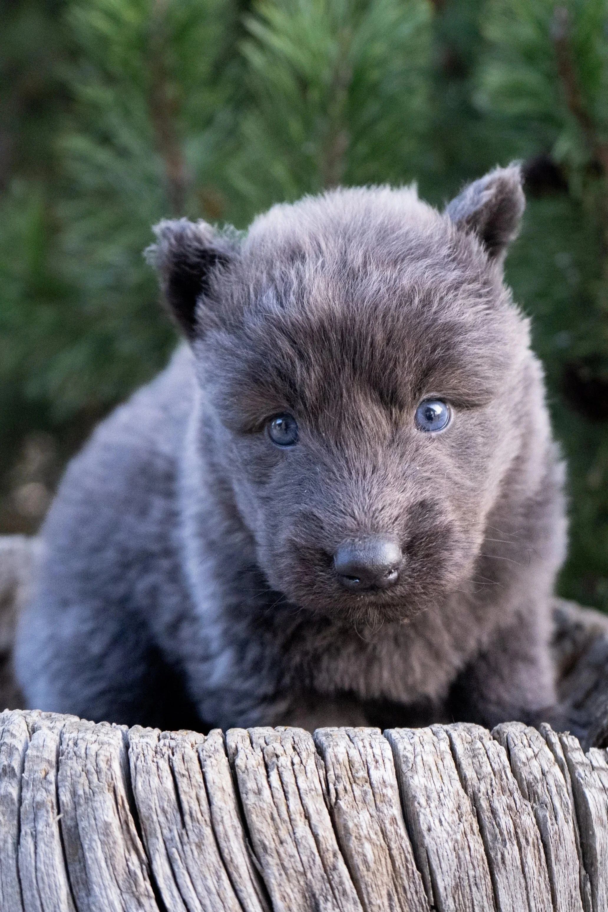 These puppies are just starting to develop their personalities and so far are extremely cuddly and eager to be around people. They love to snuggle in your lap and be held and are very curious and explorative. Normandy is a very sweet dog and has a very happy demeanor, she has been an incredible mother to these puppies which greatly impacts the puppies temperament to create a more balanced temperament in adulthood. Steele has been a great dog to create some very social Wolfdog puppies. His puppies have a very strong bond with their families and have gone on to be great with other dogs and children. I’m thrilled with how this litter is turning out so far and excited for the families that they end up with. They are the litter with the most Wolf Content that we have available currently, so families will still need to be diligent with proper and consistent training and socialization with these puppies as they mature.