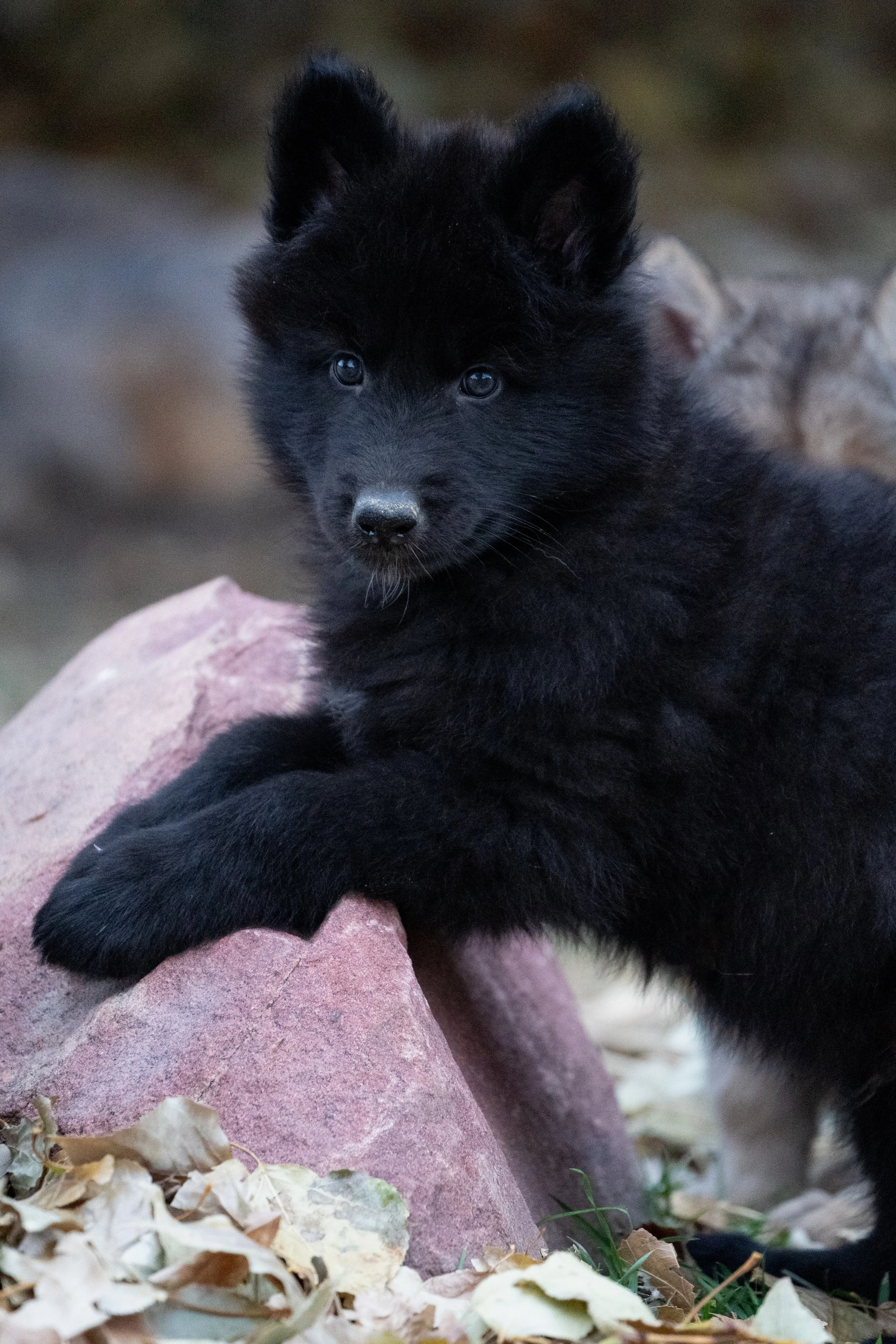 These puppies are just starting to develop their personalities and so far are extremely cuddly and eager to be around people. They love to snuggle in your lap and be held and are very curious and explorative. Normandy is a very sweet dog and has a very happy demeanor, she has been an incredible mother to these puppies which greatly impacts the puppies temperament to create a more balanced temperament in adulthood. Steele has been a great dog to create some very social Wolfdog puppies. His puppies have a very strong bond with their families and have gone on to be great with other dogs and children. I’m thrilled with how this litter is turning out so far and excited for the families that they end up with. They are the litter with the most Wolf Content that we have available currently, so families will still need to be diligent with proper and consistent training and socialization with these puppies as they mature.